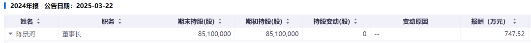 年报显示,2022~2024年, 陈景河年薪分别为994.48万元,804.92万元和747.52万元。他还持有紫金矿业8510万股股份,按最新收盘价计算,市值超24亿元。