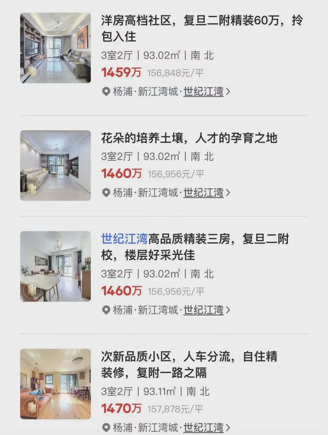 前段时间,上海市杨浦区融信世纪江湾,数套同户型、同面积的二手房齐齐挂出了1460万元统一价,业主们疑似组建“价格同盟”。