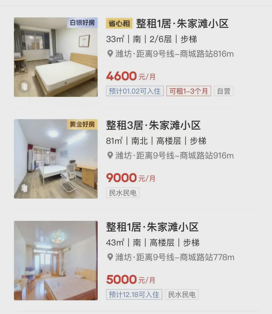 每经记者注意到,目前平台挂牌的朱家滩小区33平方米房源,月租金可以达到4600元。