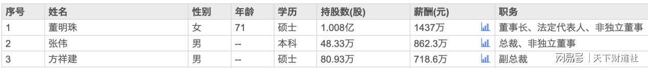 尽管格力电器业绩和股价表现目前都不理想,但公司部分高管的薪酬依然非常可观,而且持股数也不少。其中,董事长董明珠持股市值高达40亿元,年薪1437万元;总裁张伟持股市值1920万元,年薪862万元;副总裁方祥建持股市值3200万元,年薪718万元。