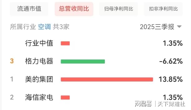 数据最具说服力。美的、海信与格力前三季度营收增速分别为13.85%、1.35%、-6.62%;净利润增速分别为19.51%、0.67%、-2.27%。