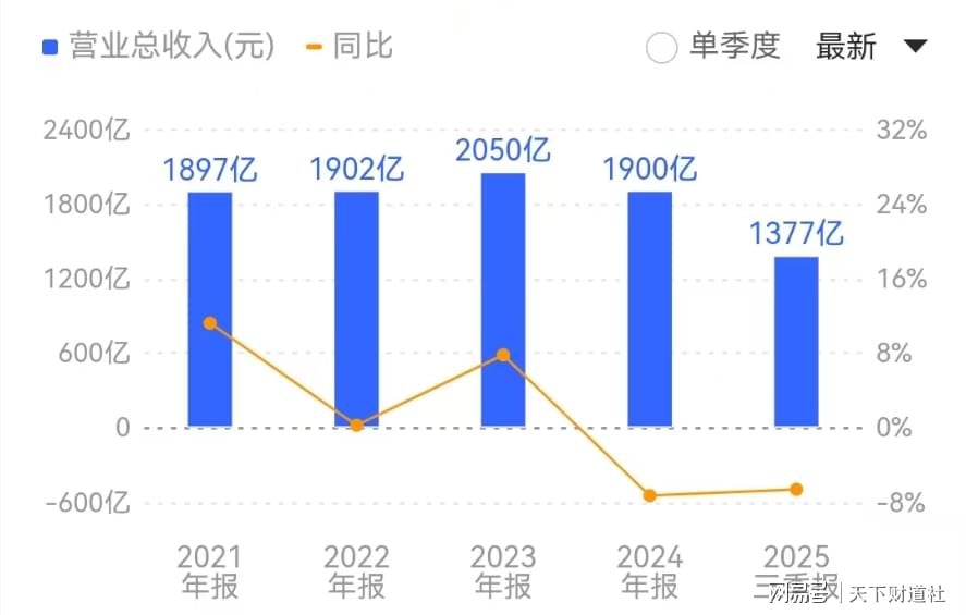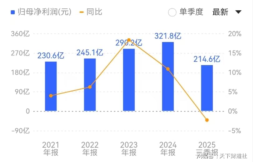 前些年,格力电器表现还不错,但自2024年以来,业绩增速步履蹒跚。2021 - 2024年,公司营收分别为1897亿元、1902亿元、2050亿元、1900亿元,同比增长11.24%、0.26%、7.82%、-7.31%;净利润分别为231亿、245亿元、290亿元、322亿元,同比增长4.01%、6.26%、18.41%、10.91%。