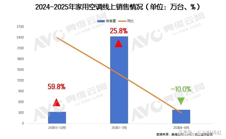 当然可以说,与外部环境有关。随着“国补”进入尾声,家电行业受房地产市场低迷、消费疲软等因素制约,奥维云网数据显示,家电行业正遭遇多重压力。2025年9月空调零售量同比下滑21%,其中线上、线下分别下滑29%和38%,市场失速造成的压力明显。