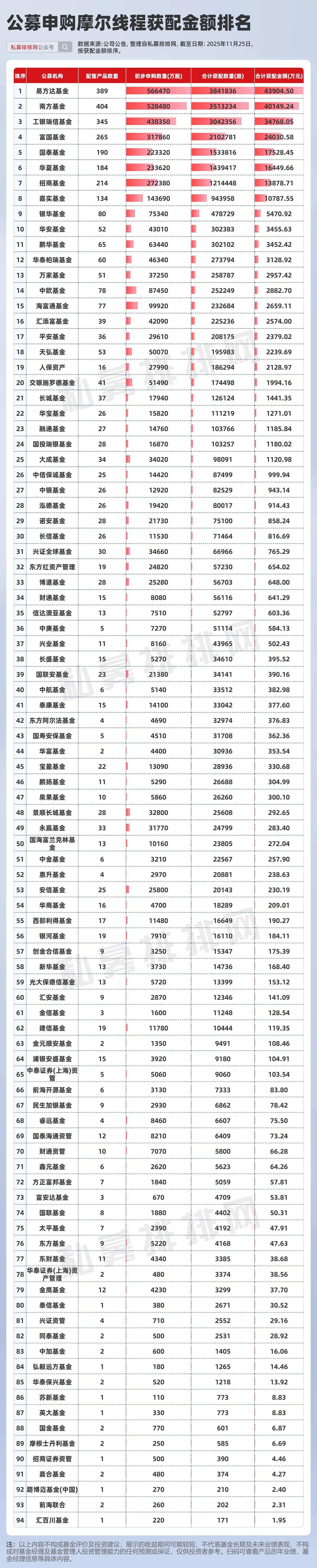 在这场资本盛宴中,公私募基金无疑是主力军,95家公募与112家私募的踊跃参与,涵盖了从头部公募到知名量化私募(如幻方、九坤)乃至林园这样的长期价值派,共同构筑了此次发行的豪华认购阵容。其背后反映出市场对国产GPU赛道的高度期待,以及对公司技术实力和未来成长空间的认可。