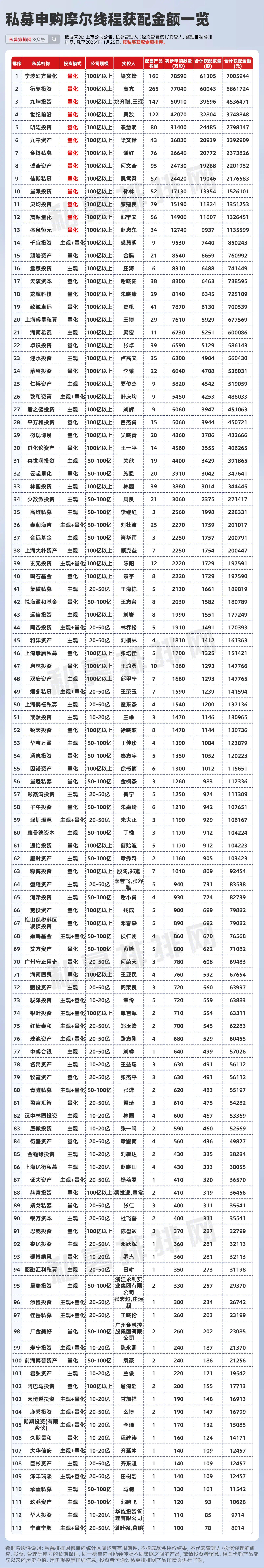 从投资模式来看,量化私募占据多数,共51家量化私募参与申购,主观私募39家、主观+量化私募23家。值得关注的是,此次获配前十的私募均为量化,其中,九坤投资、幻方量化、灵均投资等头部量化机构悉数在列,展现出量化策略在打新布局中的积极姿态。主观私募方面,林园投资、海南希瓦、迎水投资等也纷纷参与。
