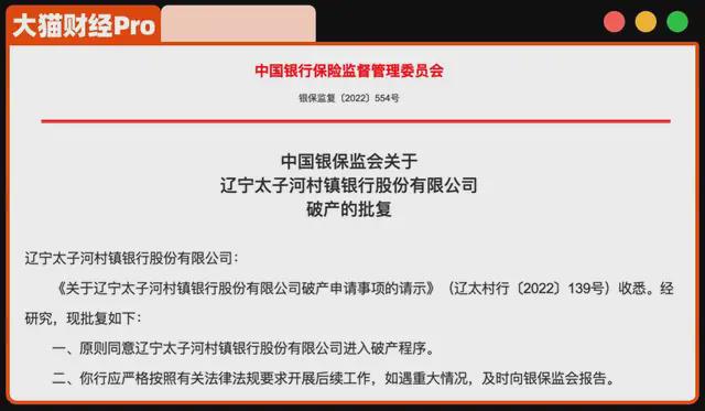 2022年8月份,破产申请被批复,成为国内少有的破产银行。