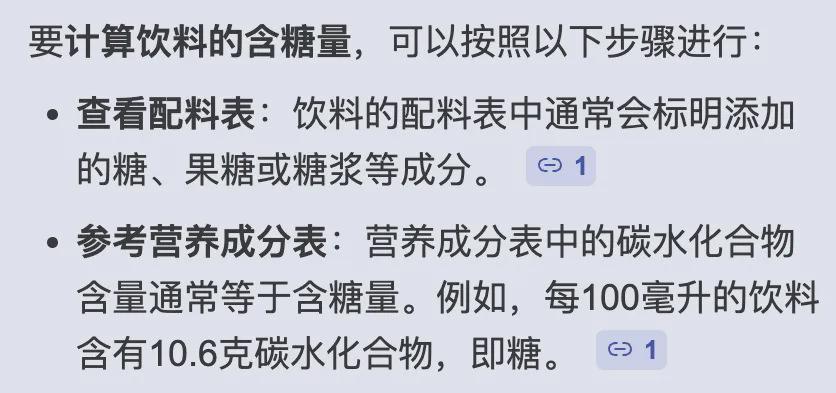 根据饮料含糖量的计算法,营养成分表中的碳水化合物含量通常等于含糖量。