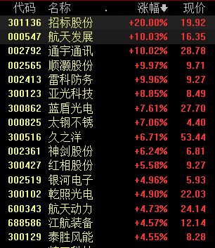 商业航天概念表现活跃,航天发展13天9板,通宇通讯4连板,顺灏股份、雷科防务等涨停。