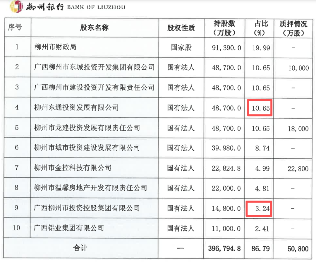 因此,尽管柳州银行未披露实控人,但从持股比例来看,最终实控人应为柳州市国资委。