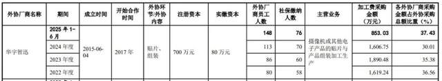 《回复函》显示,觅睿科技2022年—2024年及2025年上半年的第一大外协商均是华宇智迅。华宇智迅成立于2015年6月,双方于2017年开始进行合作,不过初期仅为觅睿科技提供电子产品组装加工服务,并非后者的第一大外协供应商。
