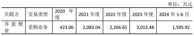 另外值得一提的是,齐意塑业是博菱电器的供应商之一,博菱电器向其采购零配件产品,2020年—2023年及2024年上半年的采购额分别为423.06万元、2083.04万元、2266.65万元、3013.48万元和1595.92万元。