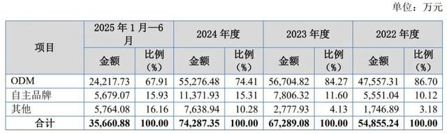 2022年—2024年及2025年上半年,觅睿科技通过ODM产品线下销售分别实现收入4.76亿元、5.67亿元、5.53亿元和2.42亿元,不过收入占比已逐年走低,各期分别为86.7%、84.27%、74.41%和67.91%。