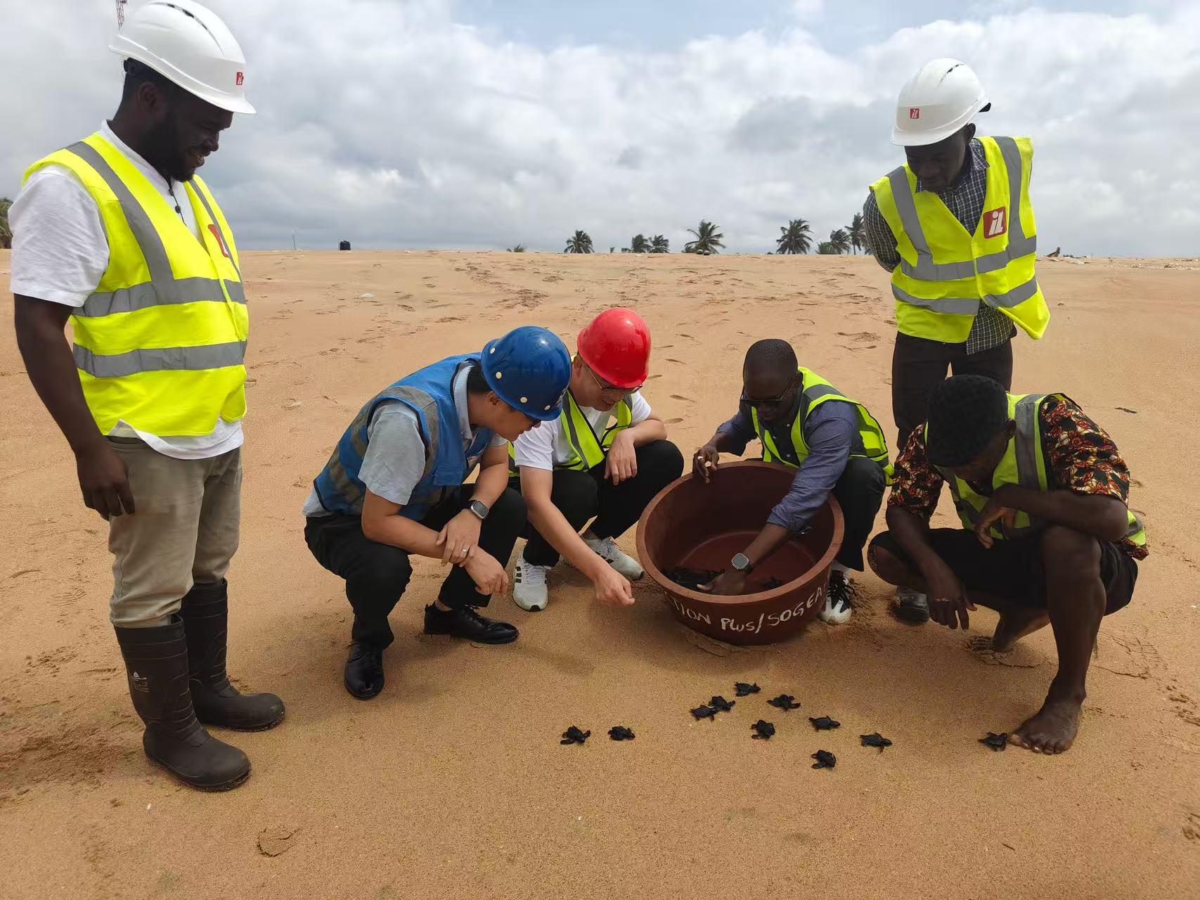 红树林的绿意还在湖边蔓延,项目团队却发现了一个亟待解决的新问题,施工区紧邻海龟传统产卵沙滩,每年5到10月,这些海龟会准时上岸,在沙地里挖掘巢穴产卵。“施工动静要是影响到它们,很可能会破坏传承多年的产卵地。”高振宇不敢怠慢,第一时间联系贝宁高校相关专业教授,连夜召开会议商讨保护方案。