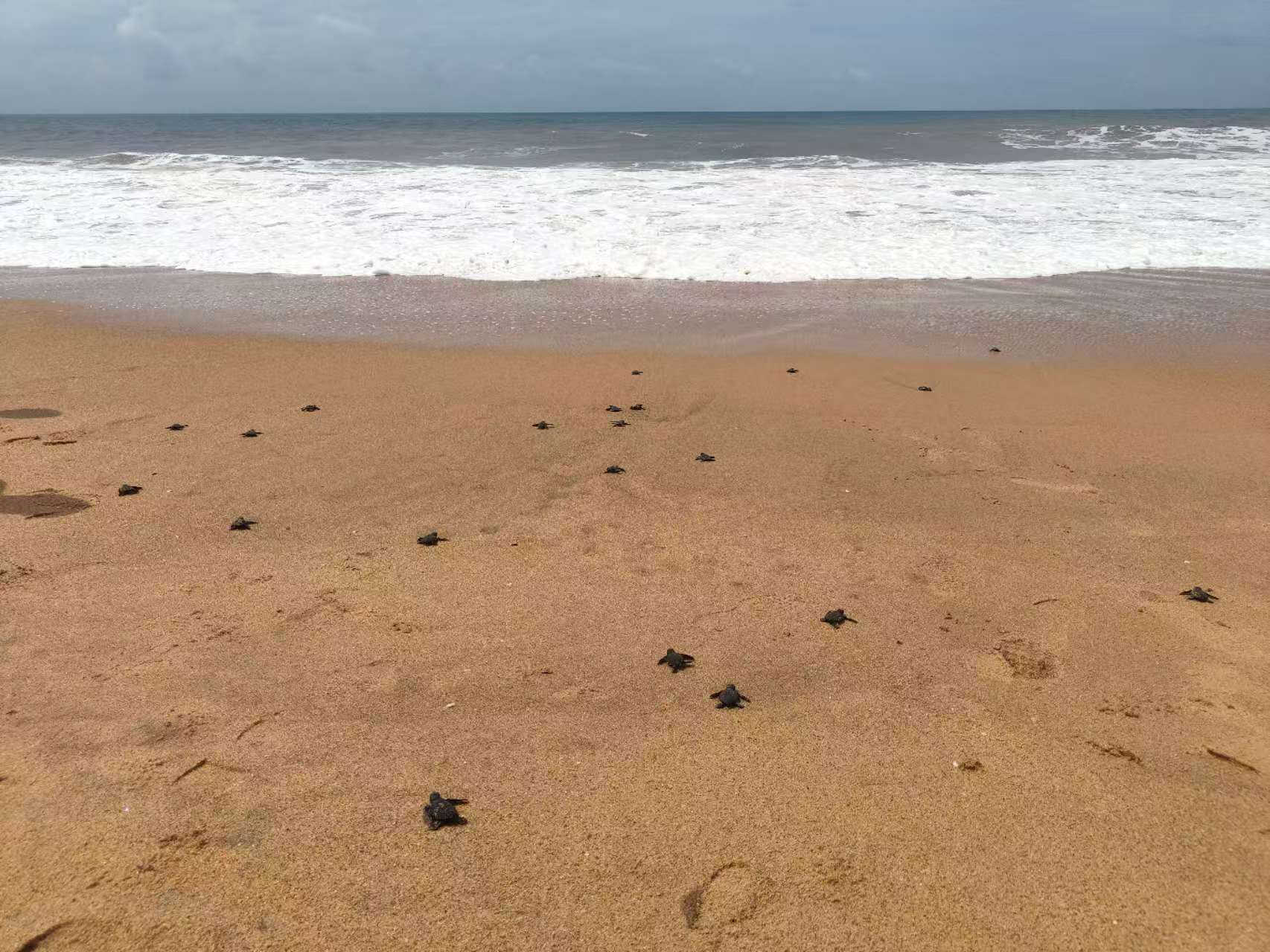 整个项目期间,团队共转移保护6窝海龟蛋,总计288颗。当第一批小海龟破壳而出时,高振宇特意邀请周边居民博尼一起,亲手将这些巴掌大的小家伙送到沙滩。看着小海龟爬向湖面,博尼紧紧拉着高振宇的手,眼眶泛红:“我小时候常来这儿看海龟,后来湖水脏了,就再也没见过了。现在,它们终于回来了!”