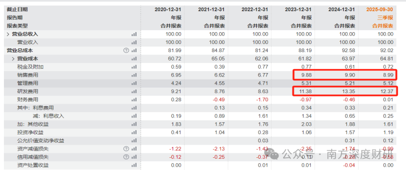 具体看,2024年公司毛利率略有下滑,但较往年幅度在2%以内,对利润影响最大的是营销和研发端的投入,从2023年起,公司进行销售人员及研发人员扩编,并在2024年,分别给研发人员及销售人员加薪了7%、17%。