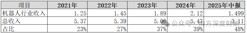 其中,机器人行业占比在2025年中报达到了48%,其他行业则为52%。