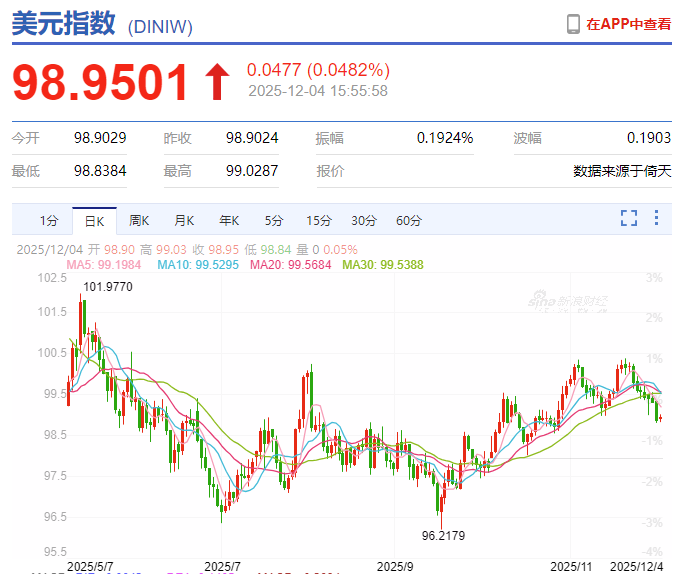 本周美元指数持续走弱,已经跌破99关口,而离岸人民币已经升值至7.06关口。