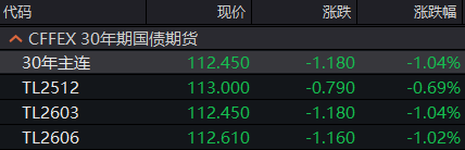 长期国债期货连续暴跌,今天30年期主力合约跌1.04%报112.450元,创2024年11月22日以来新低;10年期主力合约跌0.35%报107.670元。