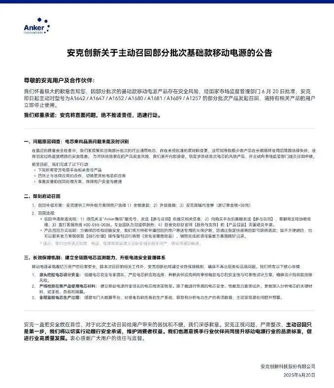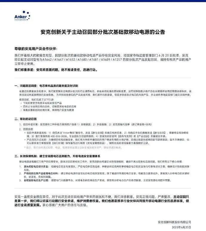 和罗马仕一样,安克创新也是受到冲击最严重的企业之一,不仅多个型号3C认证被暂停,还陷入了大规模召回的旋涡当中。