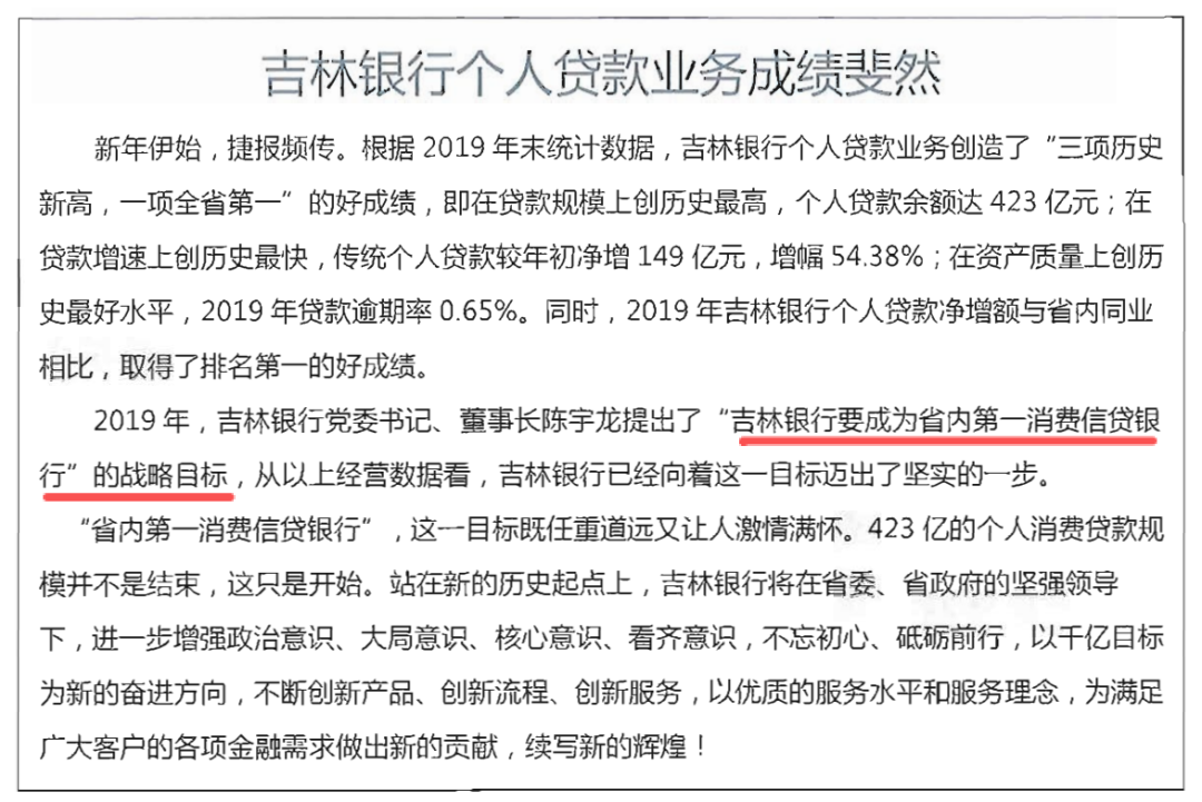 他抓住吉林银行个人贷款业务这一亮点,提出“吉林银行要成为省内第一消费信贷银行”的战略目标。