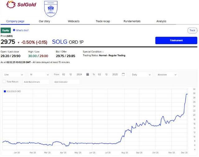 市场用脚投票给出了答案,加拿大投行CanaccordGenuity(下称:Canaccord)给出的46便士/股目标价,为标的资产注入强烈估值信心,索尔黄金股价并购消息披露前首个交易日(11月21日)的20.10便士/股,一路飙升至12月2日30.77便士/股的年内高点,区间涨幅超53%;最高价较52周内5.54便士/股的最低价,涨幅更是惊人的455%,远超同期大宗商品板块表现。