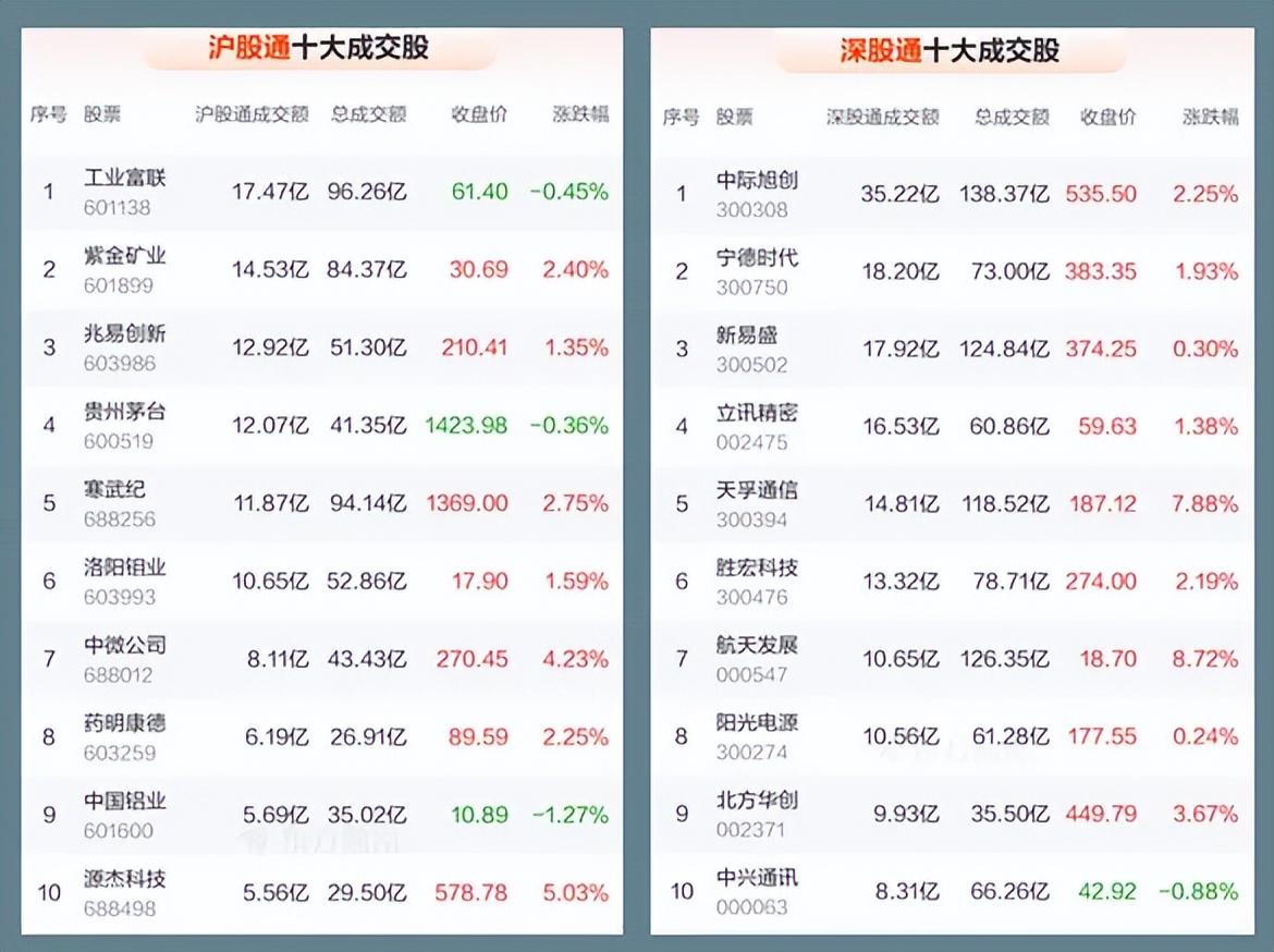 5、北向资金共成交1742.04亿元,占两市总成交额的11.25%——