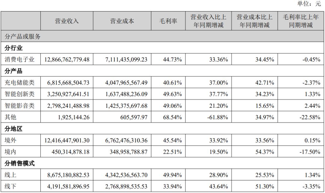更为直观的是,2025年上半年,安克创新充电储能类产品销售收入为68.16亿元,占营收的比例仍高达52.97%。