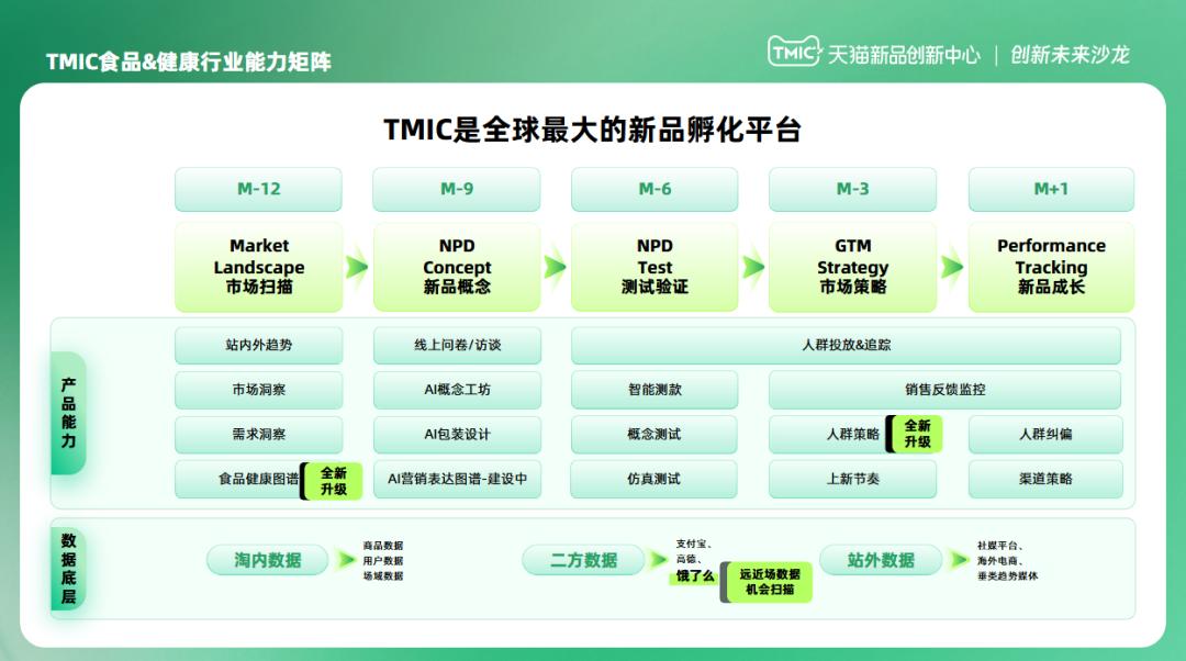 作为全球最大的新品孵化平台,TMIC依托淘内外庞大的数据资源,从市场扫描到新品概念,从测试验证到市场策略,再到最后的新品成长,全链路的市场洞察和策略指导,便是意在为产品从新品打爆到长效经营的全过程保驾护航。
