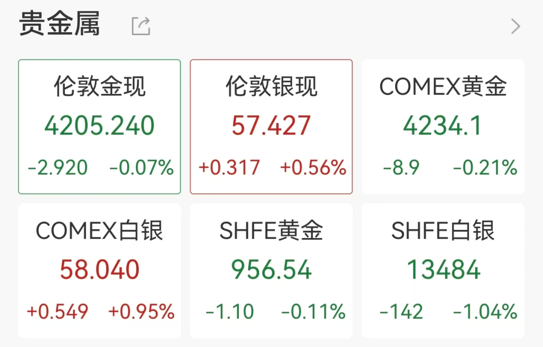 商品方面方面,LME铜价升至纪录水平。据财联社报道,花旗预计未来6至12个月内铜价将达到每吨13000美元。现货黄金短线走低,现货白银日内一度涨超1%,随后涨幅收窄。