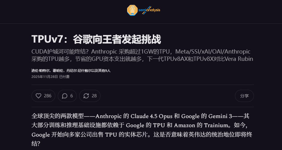 对于大多数只想赶紧把模型跑起来的中小厂来说,与其费劲巴拉地去适配 TPU,甚至根本搞不到,直接买英伟达芯片,反而是最省事的选择。