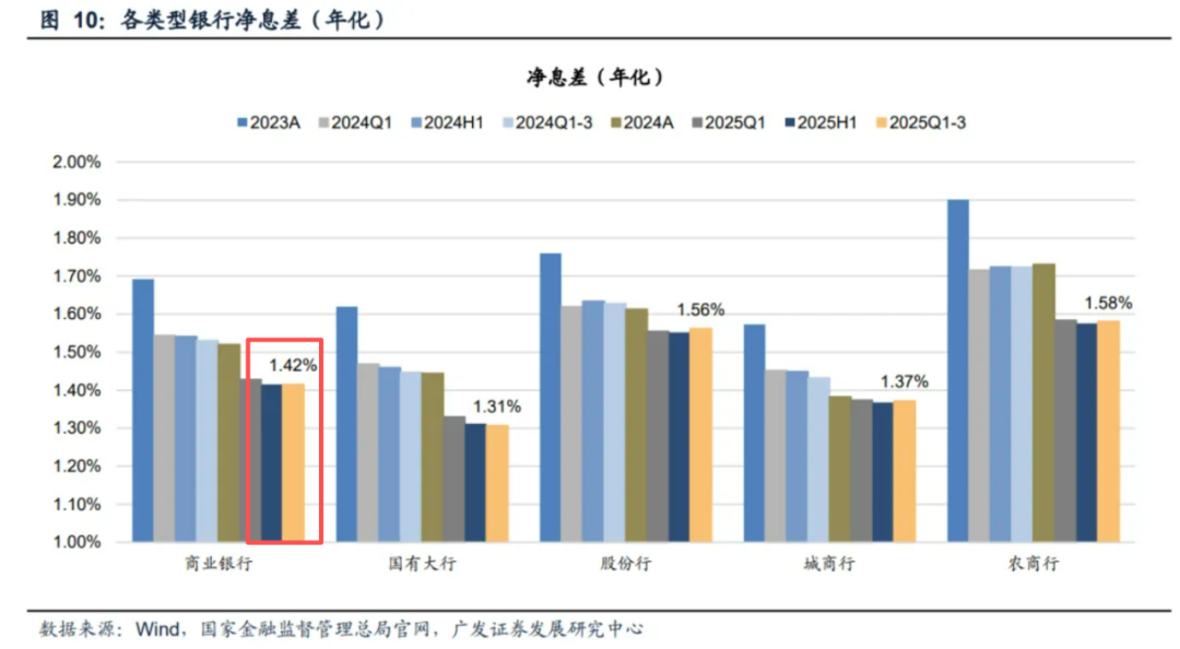 然而现实是,我国商业银行净息差已连续两年低于这一水平,今年三季度末进一步降至1.42%。
