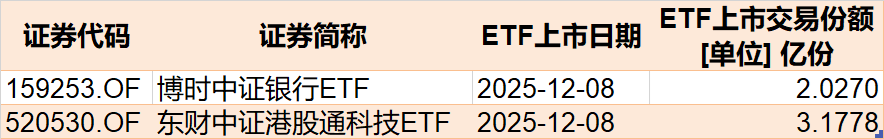 目前有2只ETF披露下周上市,跟踪标的为银行、港股科技等。