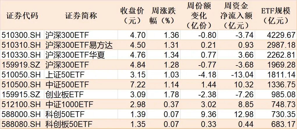 本周股指普涨,沪深两市股票型ETF和跨境型ETF合计净流入109.97亿元。