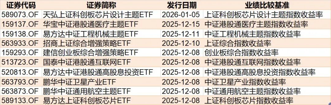 目前有8只ETF披露下周发行,跟踪标的为科创芯片、通用航空、卫星产业、港股通高股息、工程机械等。