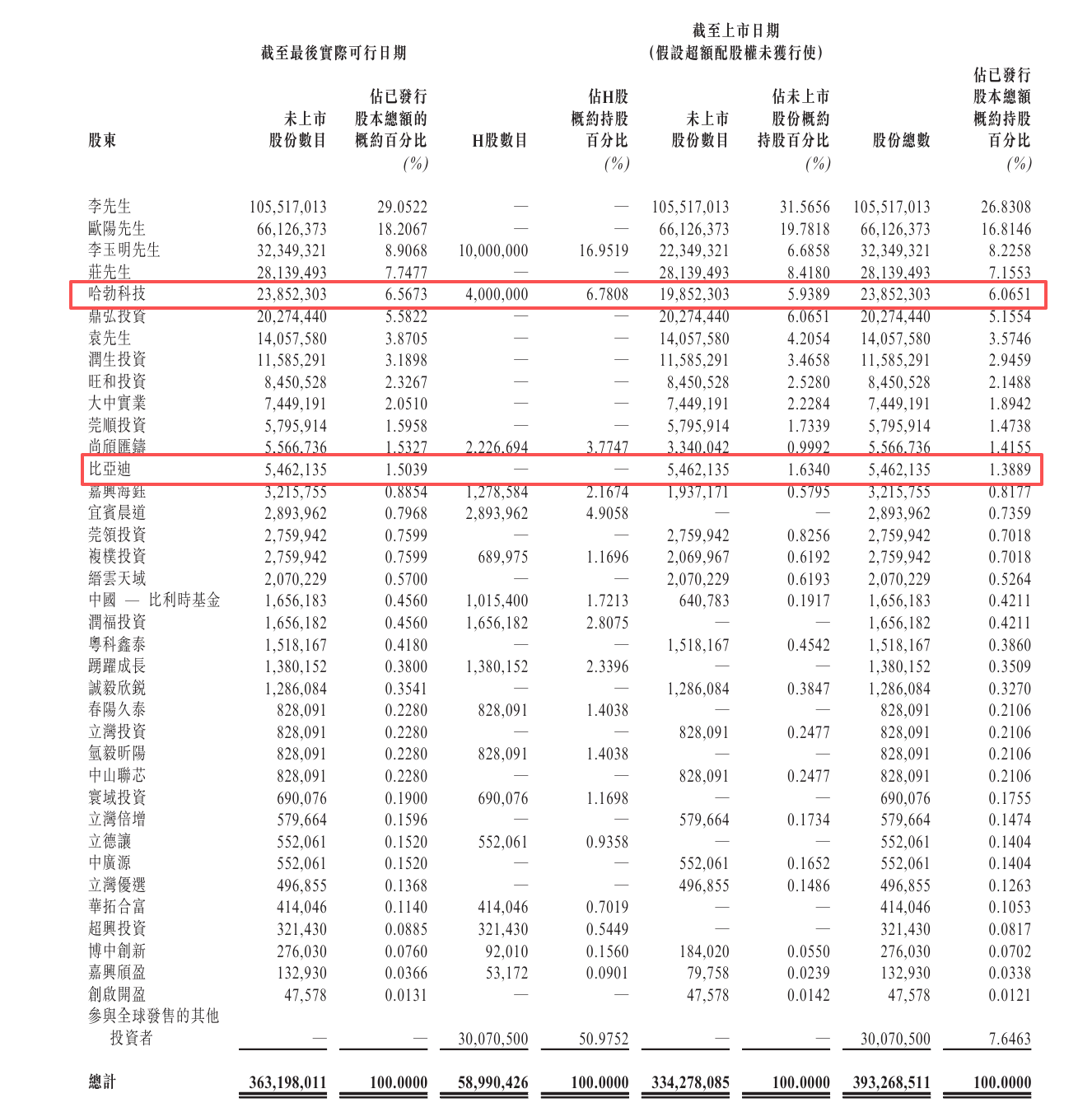 招股书信息显示,IPO前,该公司的创始人李锡光和欧阳忠分别以个人身份直接控制约29.05%和18.21%权益,华为哈勃科技持有约6.57%权益,比亚迪持有1.50%权益。