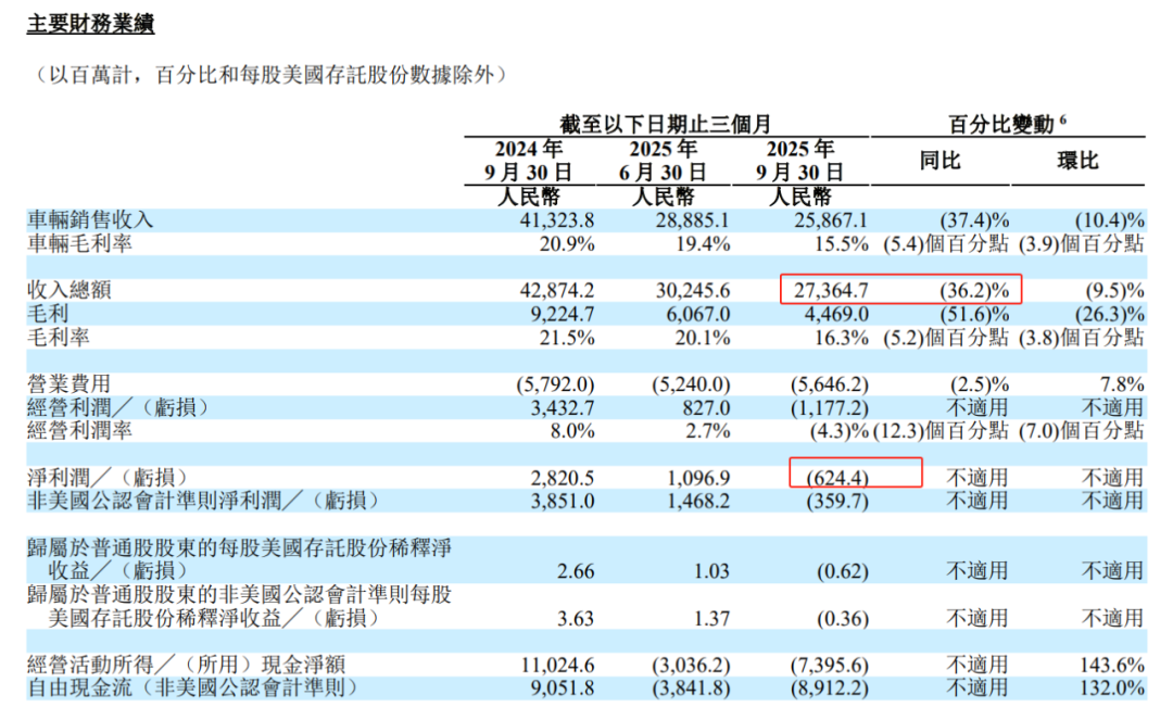 就在发布AI眼镜前,Q3季度财报的失利已经上了新闻。根据最新发布的2025年第三季度财报,理想汽车营收为273.6亿元,同比大幅下滑36.17%;净利润由盈转亏,净亏损6.24亿元。