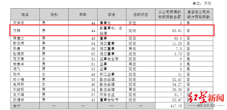 据悉,万鹏于2021年12月初开始出任川能动力总经理,并担任党委副书记;2022年1月当选为董事、副董事长。去年万鹏税前薪酬为65.91万元,在高层中位列第一。
