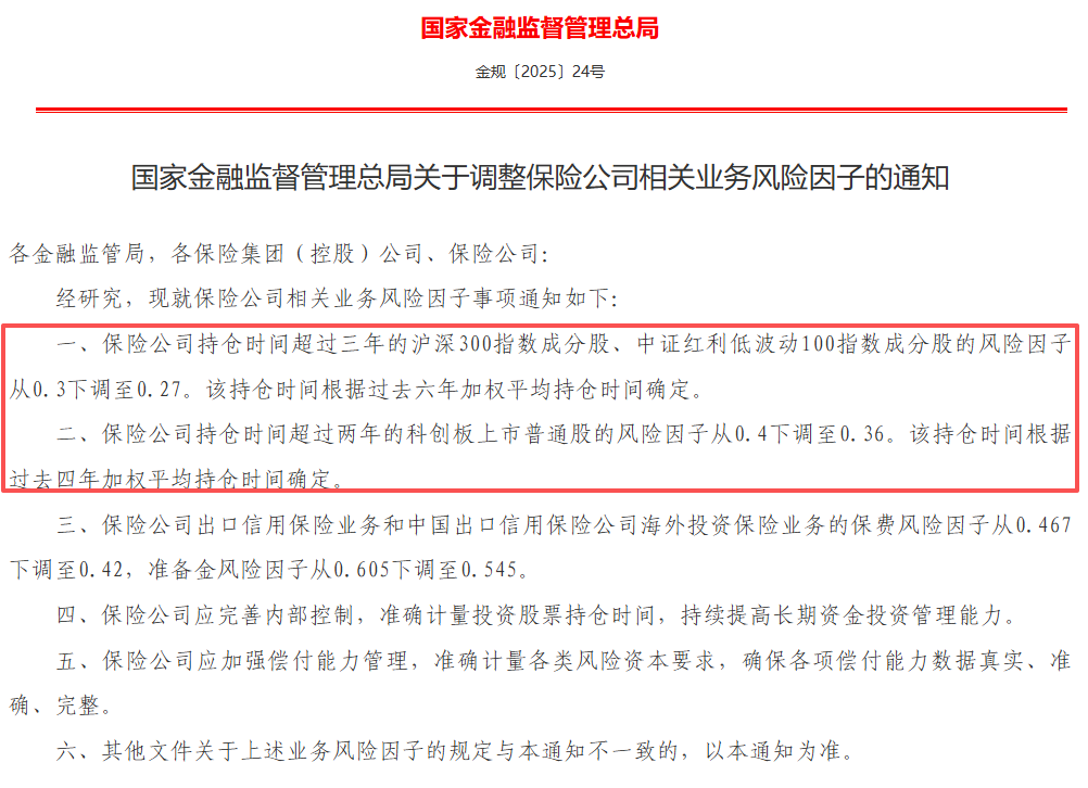 【金融监管总局:调整保险公司投资相关股票的风险因子 培育壮大耐心资本】