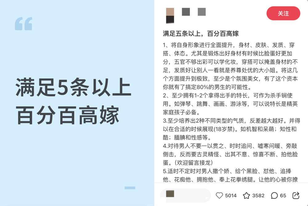 小红书刷得多了,女孩们总是幻想着霸道总裁爱上月薪3000的我。每个人结婚都是为了走捷径,捷径拥挤程度堪比春运火车站。