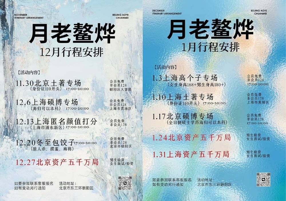 无论是@鳌烨还是@天书定位,这几位头部相亲博主,都在线下举行“资产五千万局”“高学历相亲局”“高个子相亲局”,入场券均价在128元左右。
