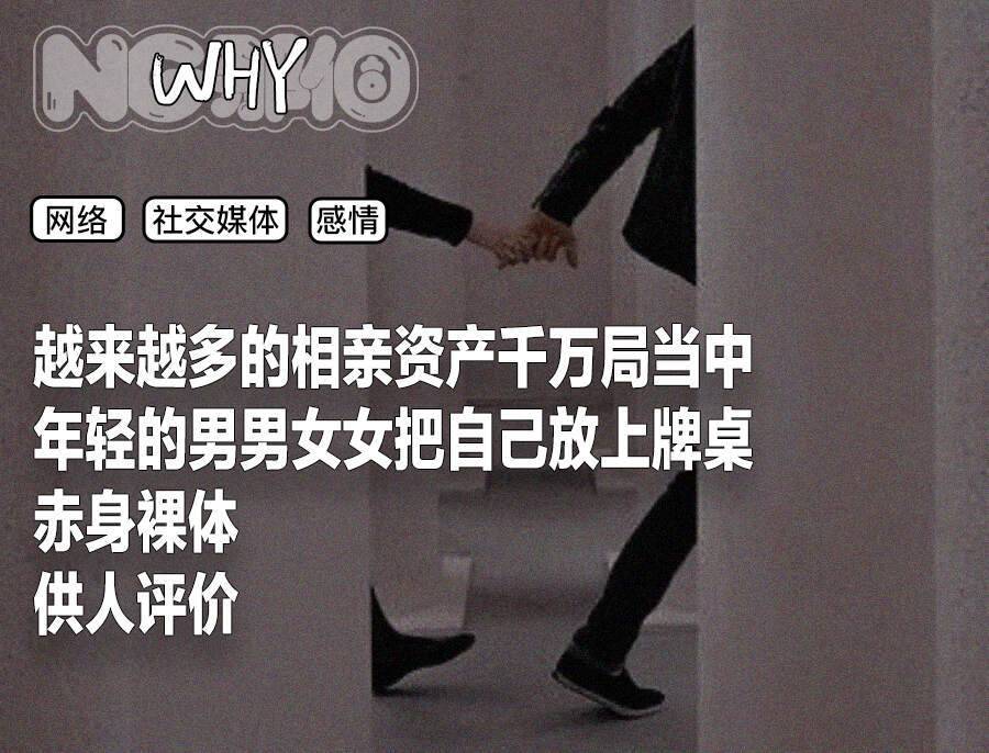 爱情至上在当下彻底宣告死亡,自由意志的沉沦只存在于文学作品当中。越来越多的相亲资产千万局当中,年轻的男男女女把自己放上牌桌,赤身裸体供人评价。