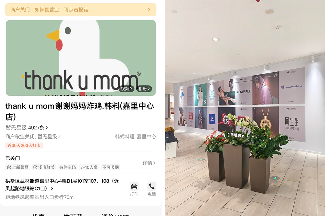 最近,有网友发帖称杭州嘉里中心的Thank u mom谢谢妈妈炸鸡,门店已经关闭且重新围挡。如今,品牌在浙江仅剩嘉兴桐乡市一家门店仍在营业。