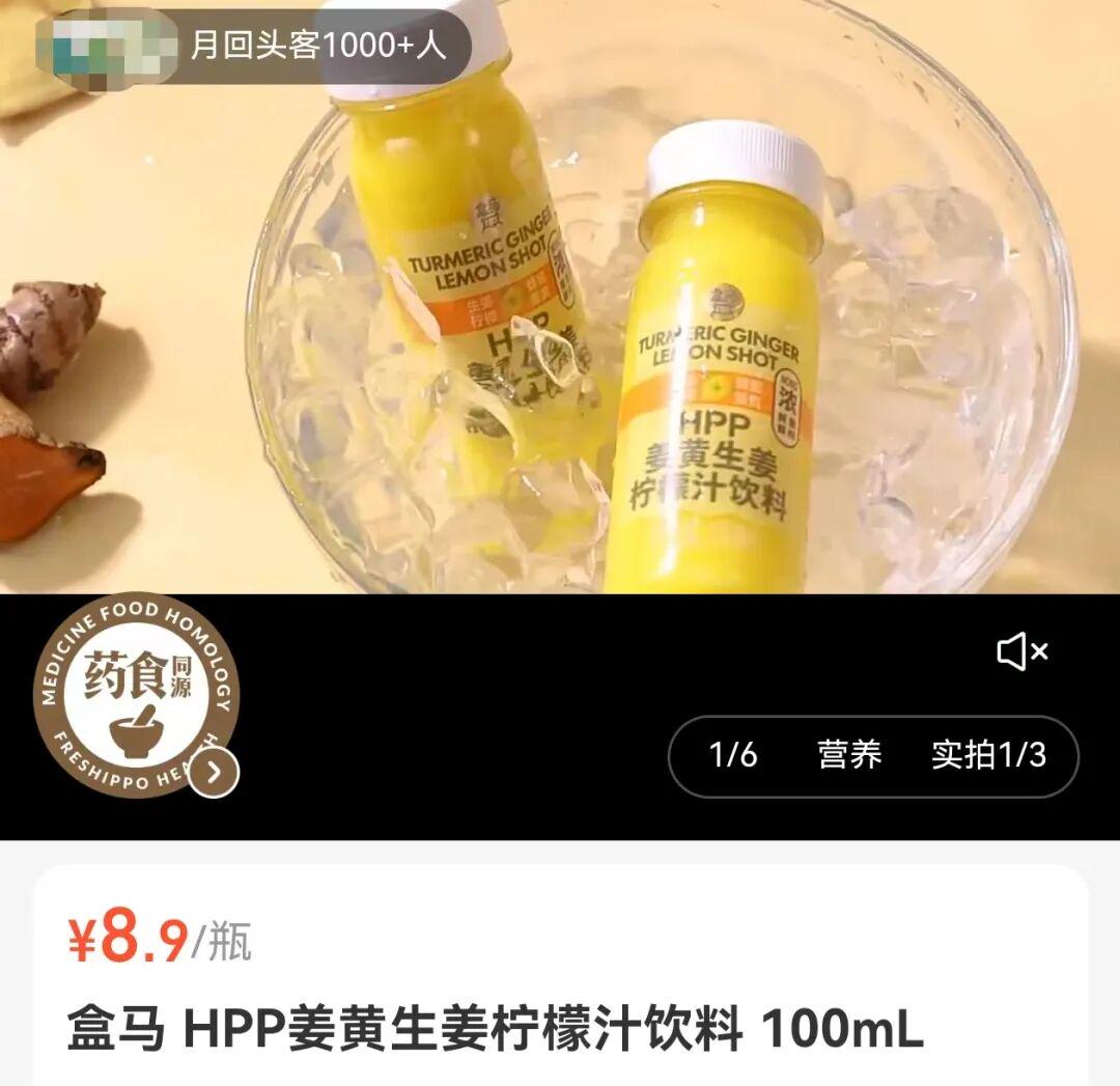 报道显示,盒马HPP姜黄生姜柠檬汁的月销售量超过6000,还经常出现“售空”“待补货”的标签。在最初上线不足一个月时,这款姜黄饮便成为盒马复购率最高的冷藏饮品,至今,它的好评率都高达99%。此外,山姆的姜黄柠檬液也总是断货。
