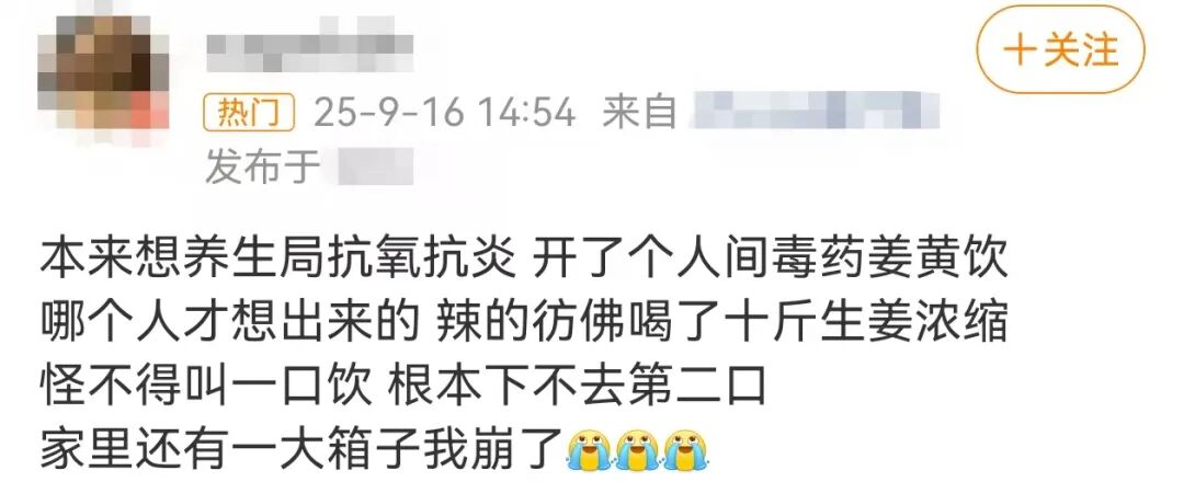 而与此同时,这类饮料的味道频遭吐槽。有网友评论称:“世界上怎么会有姜黄饮这么难喝的东西”“根本下不去第二口”。也有人评论称:“我骗自己是橙汁”。