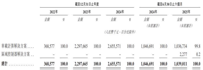 产品结构单一的风险。车联天下的产品线集中度也较高。2022年至2024年,车载计算解决方案的收入占总收入的比重均为100%,区域控制器解决方案在2025年上半年方才开始商业化,收入贡献微乎其微。