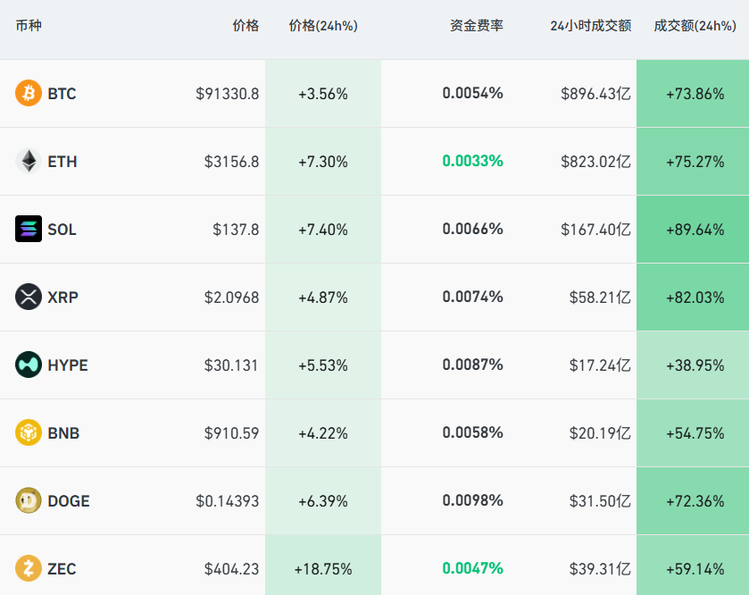 美股加密货币概念股普涨,Coinbase、Strategy一度涨超1%。与此同时,比特币短线走高,向上升破91000美元,截至22:48,过去24小时内上涨3.6%,以太坊、SOL均涨超7%。全市场超10万人被爆仓,爆仓总金额3.25亿美元,其中近2亿美元为空单爆仓。