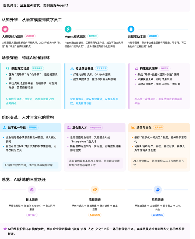 除了DingTalk A1,与会嘉宾也可以长按手机上的钉钉APP,直接“新建AI听记”,实时记录,AI会自动生成纪要和笔记,并分好章节划出重点。全新上线的图文纪要功能,还能自动生成一张“内容全览图”,从标题到框架,让复杂信息一目了然。