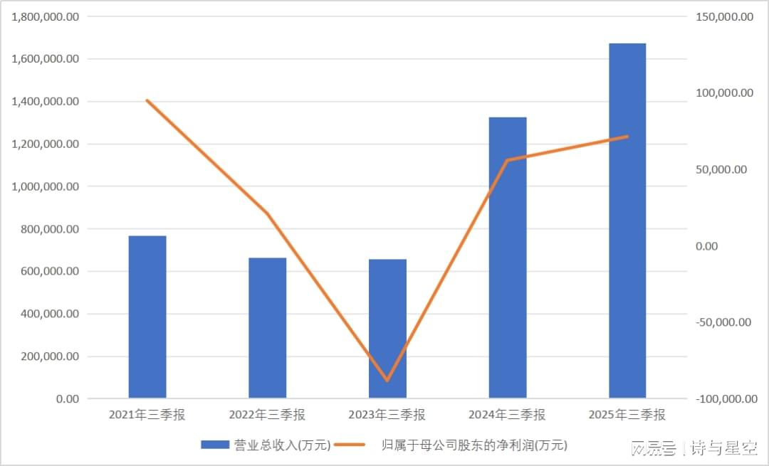 公司第三季度单季业绩非常闪耀:实现营业收入65.39亿元,同比增长54.60%;归母净利润6.98亿元,同比大幅扭亏(去年同期亏损3683.8万元),同比增长1994.42%;扣非净利润4.47亿元,同比增长1162.09%。