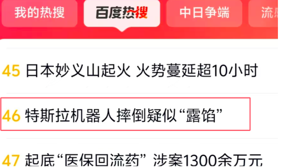 目前,特斯拉机器人摔倒疑似“露馅”一词已冲上百度热搜,对于这一事件,特斯拉官方尚未做出回应。
