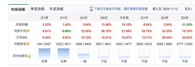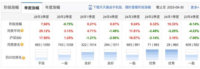 然而,自2024年三季度起,大成高鑫开始跑输市场。当季沪深300上涨16.07%,该基金仅上涨9.24%;2025年二季度,同类平均上涨3.13%,沪深300上涨1.25%,该基金反而下跌0.75%;今年第三季度,同类平均上涨25.12%,沪深300上涨17.38%,该基金仅上涨7.66%,在1050只同类产品中排名第883位。